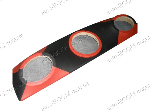 Акустическая полка ВАЗ 2103 красная, бюджет, под саб устанавливается на штатные места вместо старой. Они не скрепят и не дребезжат при езде. Благодаря ней улучшается качество звука аудиосистемы. К тому же аудиополка служит украшением интерьера ВАЗ 2103. В нашем интернет магазине можно купить и другие части для обшивки салона, тем самым освежая его или полностью тюнингуя. Основа полки выполнена из ДСП. Полка перетянута автомобильным кожзамом, а под ним небольшая поролоновая подложка. Подиумы под динамики могут быть круглыми (d13, d16 см) или овальными (6х9), под саб отверстие вырезается по Вашему заказу. К тому же под заказ можно сделать отверстия любых размеров.