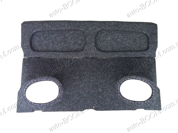 Акустическая полка ВАЗ 2104 карпет, на фанере, пирамида устанавливается на штатные места вместо старой. Они не скрепят и не дребезжат при езде. Благодаря ней улучшается качество звука аудиосистемы. К тому же аудиополка служит украшением интерьера ВАЗ 2104. В нашем интернет магазине можно купить и другие части для обшивки салона, тем самым освежая его или полностью тюнингуя. Основа полки выполнена из ДСП и специально усилена фанерой, толщина которой составляет 4-6 мм. Полка перетянута серым карпетом, а под ним небольшая поролоновая подложка. Полка имеет усиленные подиумы для динамиков, и такая технология ее проектирования называется "пирамида". Вырезы под динамики могут быть круглыми - 13, 16 см; или овальными - 6х9. Под заказ можно вырезать отверстия любых размеров. К тому же под заказ можно сделать отверстия любых размеров.