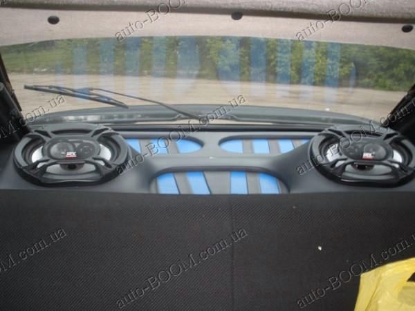 Акустическая полка на ВАЗ 2108 графит, на фанере, пирамида (с высоким подиумом)