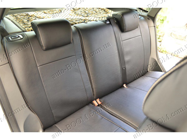 Автомобильные чехлы из экокожи Ford Focus 3 Sport+ 11- хэтчбек производятся украинской компанией Союз-Авто, пошиты из высококачественного экологически чистого кожзаменителя Аригон и экокожи. Данный материал легко поддается чистке обычными чистящими средствами, имеет отличную вентилируемую функцию. Из характеристик авточехлов следует выделить то, что задняя часть и передняя спинка закрыта, одевается мешком без резинок. Крепление осуществляется с помощью липучек на задние и передние спинки, а сведение крепится с помощью веревки. В подголовниках имеются специальные отверстия.