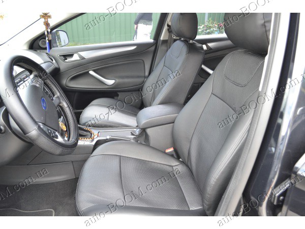 Автомобильные чехлы из экокожи Ford Mondeo 4 07-13 производятся украинской компанией Союз-Авто, пошиты из высококачественного экологически чистого кожзаменителя Аригон и экокожи. Данный материал легко поддается чистке обычными чистящими средствами, имеет отличную вентилируемую функцию. Из характеристик авточехлов следует выделить то, что задняя часть и передняя спинка закрыта, одевается мешком без резинок. Крепление осуществляется с помощью липучек на задние и передние спинки, а сведение крепится с помощью веревки. В подголовниках имеются специальные отверстия.