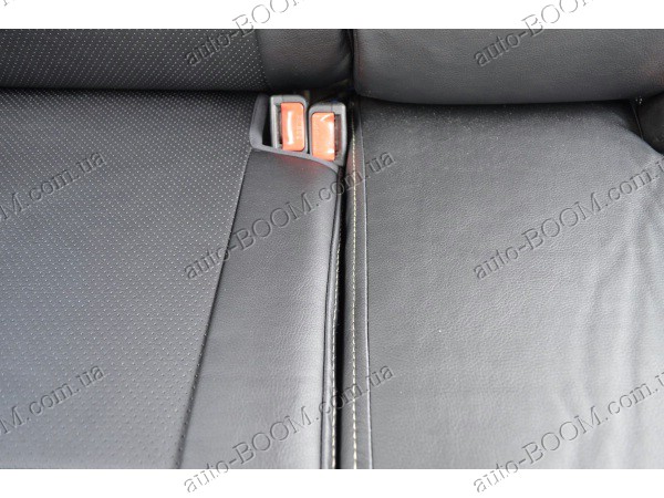 Автомобильные чехлы из экокожи Mitsubishi Lancer X 12- производятся украинской компанией Союз-Авто, пошиты из высококачественного экологически чистого кожзаменителя Аригон и экокожи. Данный материал легко поддается чистке обычными чистящими средствами, имеет отличную вентилируемую функцию. Из характеристик авточехлов следует выделить то, что задняя часть и передняя спинка закрыта, одевается мешком без резинок. Крепление осуществляется с помощью липучек на задние и передние спинки, а сведение крепится с помощью веревки. В подголовниках имеются специальные отверстия.