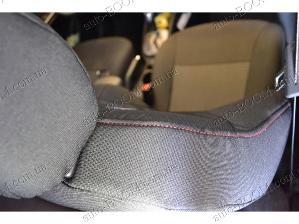 Автомобильные чехлы тканевые Kia Rio 11- производятся украинской компанией Союз-Авто. Пошиты из высокоэластичной ткани жаккард. Данный материал легко поддается чистке обычными моющими средствами, хорошо пропускает воздух. Из характеристик авточехлов следует выделить то, что задняя часть и передняя спинка закрыта, одевается мешком без резинок. Крепление осуществляется с помощью липучек на задние и передние спинки, а сведение крепится с помощью веревки. В подголовниках имеются специальные отверстия.