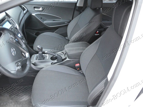 Чехлы на сиденья автомобиля Hyundai Santa Fe 12- пошиты из материалов премиум класса от производителя MW Brothers. В комплекте поставляются авточехлы на: