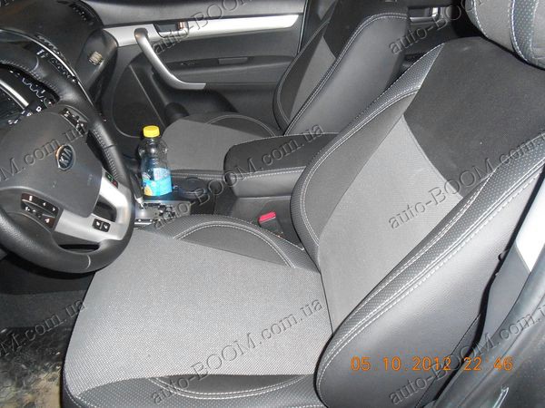 Чехлы на сиденья автомобиля Kia Sorento 2 09- пошиты из материалов премиум класса от производителя MW Brothers. В комплекте поставляются авточехлы на: