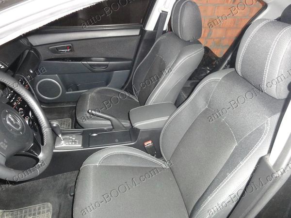 Чехлы на сиденья автомобиля Mazda 3 03-09 пошиты из материалов премиум класса от производителя MW Brothers. В комплекте поставляются авточехлы на: