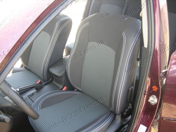 Автомобильные чехлы из экокожи в комбинации с автотканью являются одним из лучших решений для перетяжки сидений. Такой подход используют ведущие авто производители – Мерседес, Форд, Фольксваген и др. Все используемые ткани сертифицированы и производятся на немецких заводах Aunde и Fezco. Они сшиты специальными нитками двойного кручения COAX. Их особенность заключается в том, что они не растягиваются и имеют спец пропитку, препятствующую возникновения загрязнения. Благодаря этому чехлы подготовлены для эксплуатации в агрессивной среде.