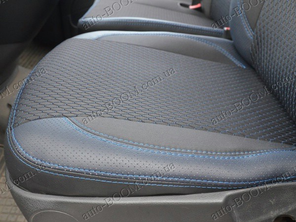 Автомобильные чехлы из экокожи в комбинации с автотканью являются одним из лучших решений для перетяжки сидений. Такой подход используют ведущие авто производители – Мерседес, Форд, Фольксваген и др. Все используемые ткани сертифицированы и производятся на немецких заводах Aunde и Fezco. Они сшиты специальными нитками двойного кручения COAX. Их особенность заключается в том, что они не растягиваются и имеют спец пропитку, препятствующую возникновения загрязнения. Благодаря этому чехлы подготовлены для эксплуатации в агрессивной среде.