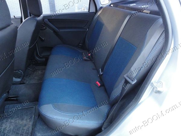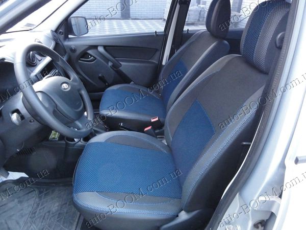 Чехлы на сиденья автомобиля ВАЗ Гранта 2190 пошиты из материалов премиум класса от производителя MW Brothers. В комплекте поставляются авточехлы на: