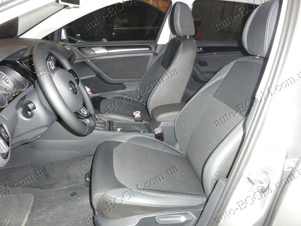 Чехлы на сиденья автомобиля VW Golf 7 12- пошиты из материалов премиум класса от производителя MW Brothers. В комплекте поставляются авточехлы на: