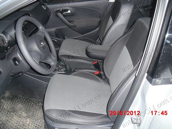 Чехлы на сиденья автомобиля VW Polo 5 09- пошиты из материалов премиум класса от производителя MW Brothers. В комплекте поставляются авточехлы на: