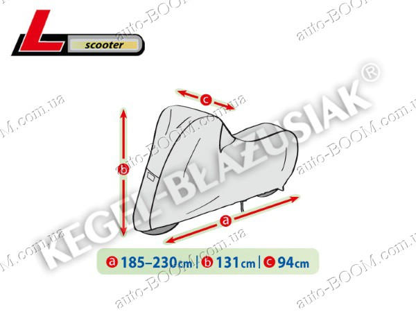 Чехол-тент для скутера L Scooter производится TM Kegel. Изготовлены из водонепроницаемого материала с системой микропор и вентиляционных отверстий, отводящих влагу из под чехла. Имеет конструкцию, которая может эффективно защитить весь мотоцикл. Чехлы для мотоцикла KEGEL-BLAZUSIAK самый надежный выбор для защиты данного вида транспорта, т. к. он гарантирует полную поддержку его в чистоте и предотвращение в появлении ржавчин. Чехол устойчив к ветру, снегу, инею, кислотным дождям, птичьему помёту, древесным сокам и солнечному излучению(UV). Высококачественный полипропилен с мягкой внутренней отделкой является залогом предупреждения всевозможных царапин на мотоцикле. Крепление осуществляется стандартным образом, по нижнему краю тента встроен шнур для связывания. Состав ткани:100% PP+PE.
