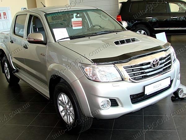 В простонародье эти аксессуары называются мухобойками, что является точным названием, так как одной из основных функций, которые они выполняют - это создание аэродинамического потока, который перебрасывает насекомых через крышу автомобиля. Благодаря этому лобовое стекло остается дольше чистым и легче моется. К тому же дефлектор на капоте выступает в роли украшения экстерьера машины. Купить дефлектор капота на Тойота Хайлюкс 7 можно оставив заявку на сайте или по телефону.