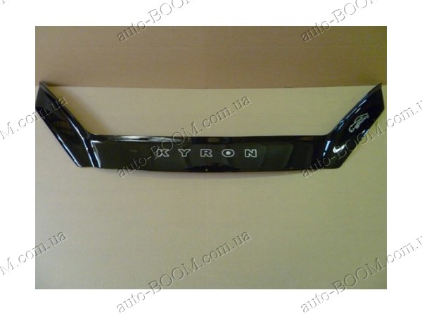 Дефлектор капота на SsangYong Kyron 05- предотвращает попадание мелких камушков на лобовое стекло и капот. Это предотвращает трещины на стекле и сколы на лакокрасочном покрытии, защищая капот от коррозии. За счет своих аэродинамических свойств этот аксессуар также называется мухобойкой, потому что значительно уменьшает попадание мошек на лобовое стекло, просто перебрасывая их потоком воздуха через машину. Это улучшает видимость и экономит жидкость в бачке омывателя.