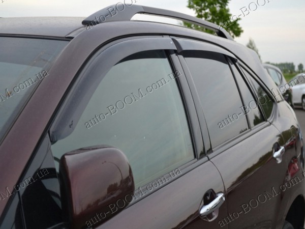 Дефлекторы окон на Lexus RX 400h 05-09 производятся ТМ Cobra Tuning. Они изготовлены из качественного оргстекла. Это позволяет сохранить их целостность при легких ударах. Например, о ветки, за которые цепляешься во дворах или на автомойке под струей. К тому же на морозе под воздействием силы они не лопаются. Даже крепко взявшись за них, они останутся целыми. Конечно, при желании можно сломать все, но в повседневной жизни ветровики прочные и служат долгие годы.