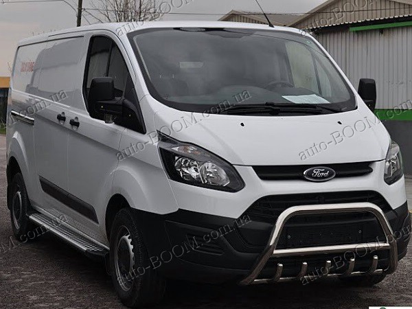 Кенгурятники на Ford Transit Custom 12- из нержавеющей качественной стали производство St-line (Турция). Такая конструкция состоит из спаянных труб и стержней. Крепятся в основном спереди, но реже сзади автомобиля. Предназначения кенгурятников в наше время, как защита кузова при езде по бездорожью. При неожиданном столкновении они уменьшат или смягчат удар от повреждения и деформации автомобиля. Кенгурятники служат не только, как защита, но и как прекрасный аксессуар для вашего авто, придавая солидный привлекательный внешний вид. Чаще всего используют такой аксессуар для джипов, микроавтобусов, пикапов. Купить и забрать данный товар на автомобиль Форд Транзит Кустом можно у нас в магазине лично или с доставкой по Украине.