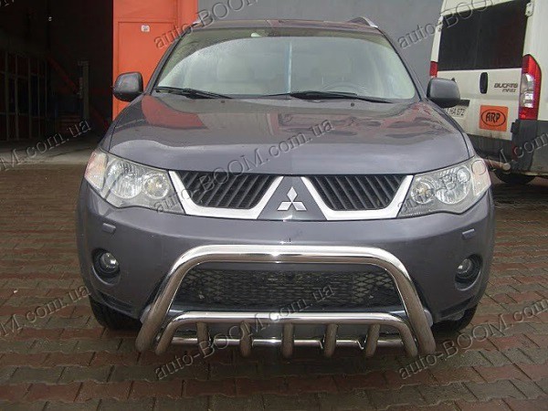 Кенгурятники на Mitsubishi Outlander 2 XL 06-10 из нержавеющей качественной стали производство St-line (Турция). Такая конструкция состоит из спаянных труб и стержней. Крепятся в основном спереди, но реже сзади автомобиля. Предназначения кенгурятников в наше время, как защита кузова при езде по бездорожью. При неожиданном столкновении они уменьшат или смягчат удар от повреждения и деформации автомобиля. Кенгурятники служат не только, как защита, но и как прекрасный аксессуар для вашего авто, придавая солидный привлекательный внешний вид. Чаще всего используют такой аксессуар для джипов, микроавтобусов, пикапов. Купить и забрать данный товар на автомобиль Мицубиси Аутлендер 2 можно у нас в магазине лично или с доставкой по Украине.