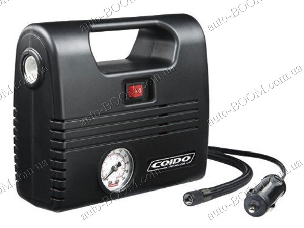 Автомобильный компрессор Coido 2702 надежный и удобный в применении. Автокомпрессор можно использовать как для накачивания автомобильных колес, так и в быту. Продуктивность данного компрессора составляет 12 л/мин. Сразу после включения штекера в розетку прикуривателя, компрессор готов к работе, не создавая помех бортовому компьютеру. Защитная система автоматического отключения питания при перегрузке поможет избежать поломок. В комплект входит три адаптера для накачивания надувных резиновых изделий. Длина шнура питания составляет 2,9 м, длина шланга 0,5 м. Также компрессор оснащен фонариком, который поможет в темное время суток.