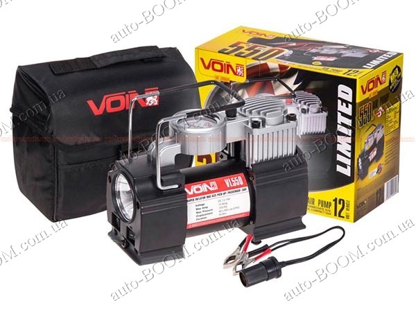 Автомобильный компрессор Voin VL-550 классический компрессор для подкачки колес. Выполнен из качественных материалов и высоким качеством сборки. Отличаеется высокой производительностью не смотря на небольшой размер. Компрессор работает как от прикуривателя та и от клемм и сможет прийти Вам на помощь в любую минуту. Встроенный дефлятор поможет Вам точно установить нужное давление в шинах, путем стравливания лишего воздуха. При покупке данного компрессора Вы получете качественный аппарат, который будет служить Вам долгие годы.