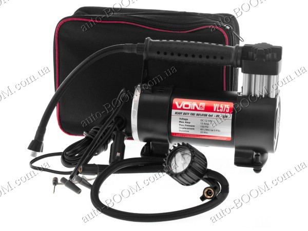 Автомобильный компрессор Voin VL-575 - это классическая модель поршневого компрессора с мощным роторным двигателем и влагостойким корпусом. Отличительная особенность данной модели — высокая продуктивность, прочный резиновый шланг, а также специальная изоляция воздушного шланга, что позволяет использовать компрессор при низких температурах. В комплекте с компрессором идет: высокоточный манометр, дополнительные насадки для накачивания велосипедных камер, мячей, лодок, водонепроницаемая сумка для хранения. Встроенный LED фонарик поможет найти любую затерявшуюся вещь в темное время суток.