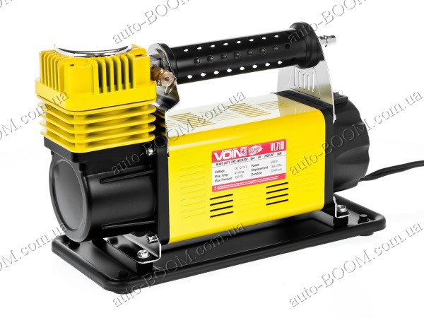 Автомобильный компрессор Voin VL-710 очень мощный, надежный и производительный - однопоршневой компрессор с влагозащищенным металлическим корпусом отвечает высоким стандартам по ISO 9001 и не оставит равнодушным любого автомобилиста. Благодаря отличной производительности однопоршневой системы с тефлоновыми кольцами и мощному роторному двигателю поможет, без особых усилий, автомобилисту накачать колеса джипов, минивенов и автобусов. Устройство укомплектовано быстросъемным витым шлангом высокого качества с закруткой и отдельным высокоточным манометром на шланге, который защищен дополнительным резиновым кольцом, а воздух, поступающий в цилиндр, проходит через дополнительный фильтр - в комплекте. Компрессор подключается к клеммам напрямую к АКБ через удобные «крокодилы» с дополнительным встроенным легкозаменяемым предохранителем. Металлическое основание обеспечивает устойчивость при работе устройства. Дополнительные насадки на шланг расширят потенциал использования компрессора в быту и на отдыхе.