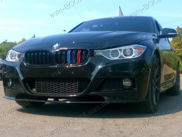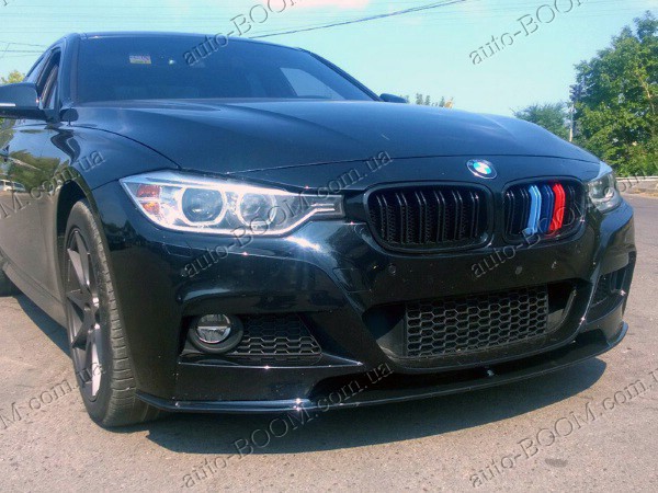 Накладка на передний М-бампер BMW 3 F30 12- изготовлена из высококачественного стеклопластика производство Lerrium. Лицевая сторона покрыта гелькоутом для стойкости к агрессивным средам. Данная накладка подходит только на М-бампер. Не смотря на свой грозный вид, клиренс совсем не нарушается. Нижний кант накладки выходит на нижний срез бампера. Прочная и легкая в установке, крепежи находятся на уровне заводских, полностью готова под покраску.