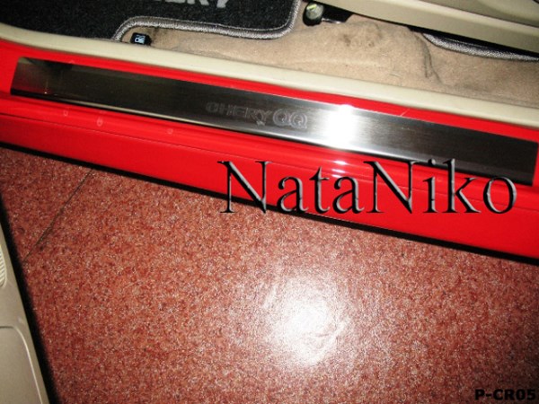 Накладки на пороги Chery QQ 03- производятся фирмой NataNiko (4 штуки в комплекте). По желанию и совершенно БЕСПЛАТНО можем обклеить карбоновой пленкой. Они изготавливаются из нержавеющей стали, толщина которой составляет 0,5 мм. Крепятся на металлическую часть порогов на двусторонний скотч ЗМ, который уже нанесен с внутренней стороны накладок. Данные элементы в полной мере защищают лакокрасочное покрытие порогов Чери Куку от сколов и царапин. К тому же они будут служить на протяжении многих лет, потому что не подвержены коррозии. Однако накладки порогов не только выполняют защитную функцию, но и служат украшением автомобиля, что, несомненно, будет радовать глаз.