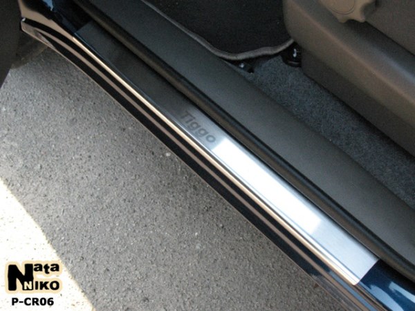 Накладки на пороги Chery Tiggo 05-11 производятся фирмой NataNiko (4 штуки в комплекте). По желанию и совершенно БЕСПЛАТНО можем обклеить карбоновой пленкой. Они изготавливаются из нержавеющей стали, толщина которой составляет 0,5 мм. Крепятся на металлическую часть порогов на двусторонний скотч ЗМ, который уже нанесен с внутренней стороны накладок. Данные элементы в полной мере защищают лакокрасочное покрытие порогов Чери Тиго от сколов и царапин. К тому же они будут служить на протяжении многих лет, потому что не подвержены коррозии. Однако накладки порогов не только выполняют защитную функцию, но и служат украшением автомобиля, что, несомненно, будет радовать глаз.