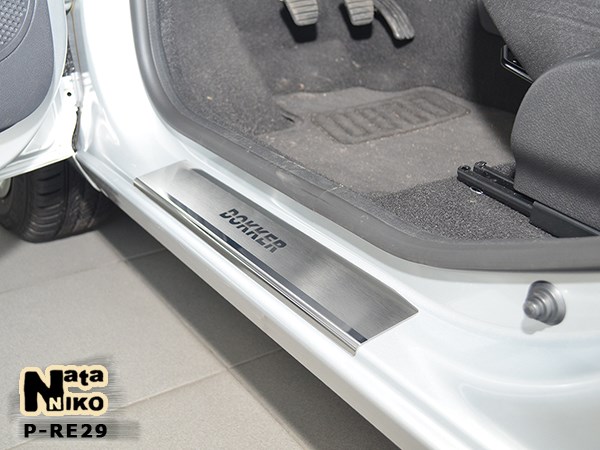 Накладки на пороги Renault Dokker 12- производятся фирмой NataNiko (4 штуки в комплекте). По желанию и совершенно БЕСПЛАТНО можем обклеить карбоновой пленкой. Они изготавливаются из нержавеющей стали, толщина которой составляет 0,5 мм. Крепятся на металлическую часть порогов на двусторонний скотч ЗМ, который уже нанесен с внутренней стороны накладок. Данные элементы в полной мере защищают лакокрасочное покрытие порогов Рено Доккер от сколов и царапин. К тому же они будут служить на протяжении многих лет, потому что не подвержены коррозии. Однако накладки порогов не только выполняют защитную функцию, но и служат украшением автомобиля, что, несомненно, будет радовать глаз.