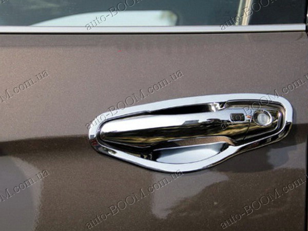 Накладки под ручки Hyundai Santa Fe 12- из ABS/chrome пластика производство Libao, который будет служить долгое время, не теряя при этом свой внешний вид. Основными достоинствами хромированных наклодок являются прочность, долговечность и устойчивость к коррозии. При установке накладок ничего не требуется разбирать. Накладки крепятся на двухсторонний скотч. Накладки под ручки придадут стильный вид вашему автомобилю, подчеркнут индивидуальность,защищат от любого механического и климатического воздействия. При снятии не оставят следов на оригинальных элементах кузова.