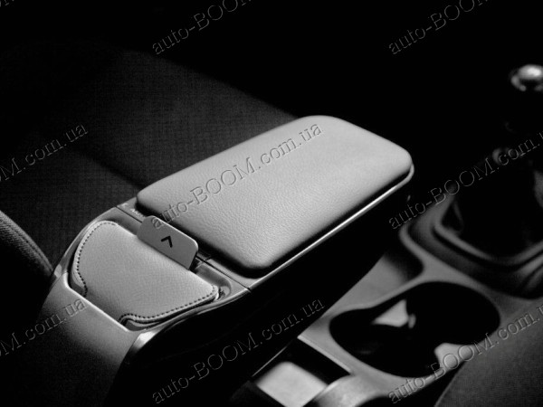 Сам подлокотник изготовлен из АБС пластика стойкого к ударам. Для обеспечения прочности конструкции в ней встроены металлические элементы. За счет этого автоподлокотник выдерживает постоянные нагрузки до 80 кг. Верхняя крышка обшита автомобильной прессованной кожей, которая стойкая к истиранию и предназначена для эксплуатации в тяжелых условиях. Подняв крышку вверх получаешь доступ к боксу, где можно хранить всякого рода мелочи или вещи которые нужно скрыть от посторонних глаз. Это отделение покрыто приятным на ощупь вспененным пенополиуретаном.