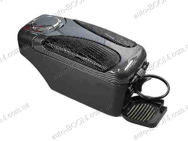 Подлокотник универсальный Vitol 48007 карбон имеет пластиковый каркас, а в качестве ткани используется автомобильный кожзам. Размеры: