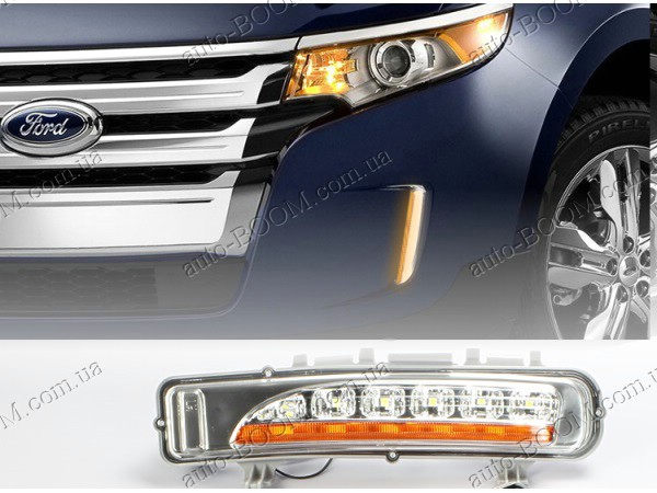 Дневные ходовые огни 2 штуки на Ford Edge 12- (с оригинальной проводкой, функцией повторителя поворотов) являются модельными и подходят только на этот автомобиль. Они имеют яркий светодиодный белый свет. Фирма производитель - AVTM, Турция. В комплекте поставляется проводка и необходимые крепежи. Эти фары устанавливаются в штатные места накладки ПТФ.